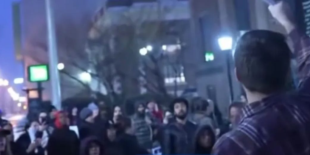 The people packed the meeting and they were parked outside chanting.