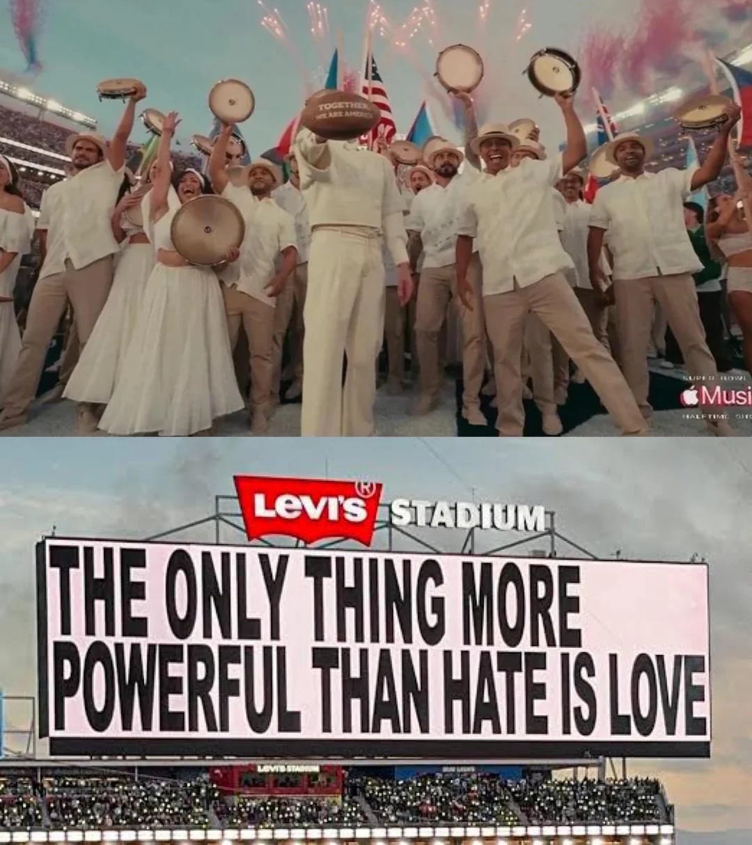 Without ever mentioning Trump or ICE, the singer — whom Trump and the Right tried to pressure the NFL into dropping — centered love.