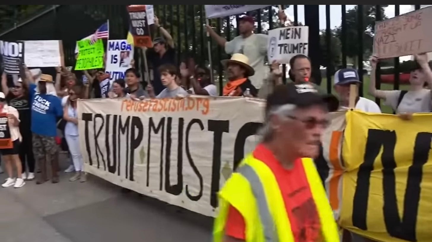 Protesters started with a rally in DuPont Circle and later marched to the White House chanting "Free DC! Trump must go!"and waving signs, some reading: “Trump must go now!” “Mein Trumpf” MAGA is Putin” No!” “Nazi” “Trump Epstein Putin BFF” and more.