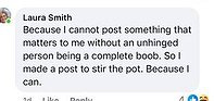 Laura Smith seems to have the temperament of a 7-year-old child. Here is her initial reaction to the response she got, which can be summarized as “No I didn’t but if I did, he did it first and also, waaah!”: