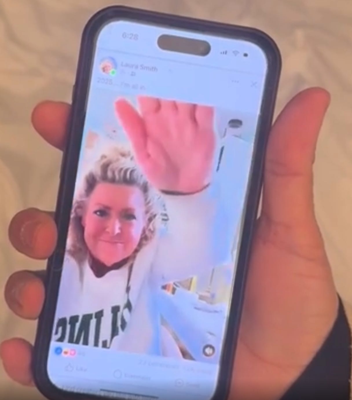 In a Tik Tok video posted on Thursday to the account @laurasmith6036, which has since been removed but was captured here, Smith can be seen hitting her chest three times and giving the palm down arm straight out in front of the camera salute.