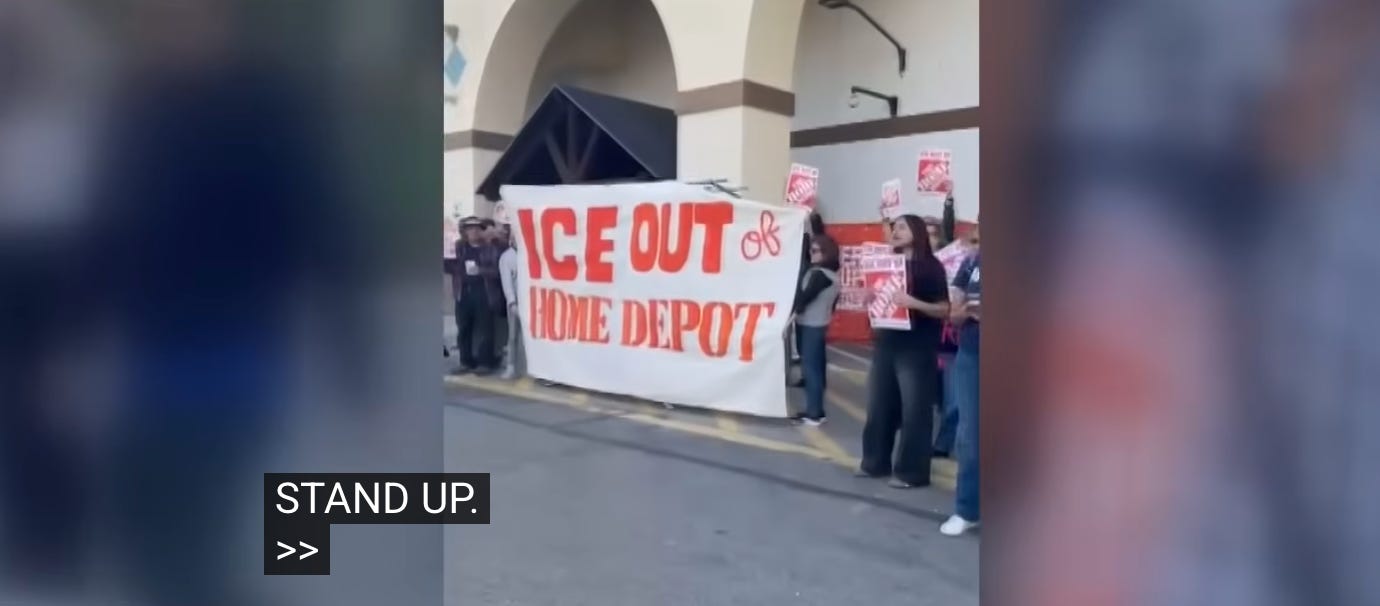 An activist pointed out that Home Depot shut the store down over a protest, but refuses to shut the store down to prevent ICE raids and abuse.
