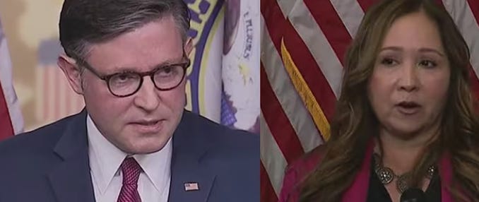Speaker of the House Mike Johnson said that Rep.-Elect Adelita Grijalva is a victim of the political games that are being played by Democrats.