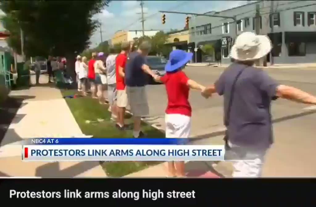 People locked arms in Columbus, Ohio in a protest against Donald Trump, that stretched 8 miles long.