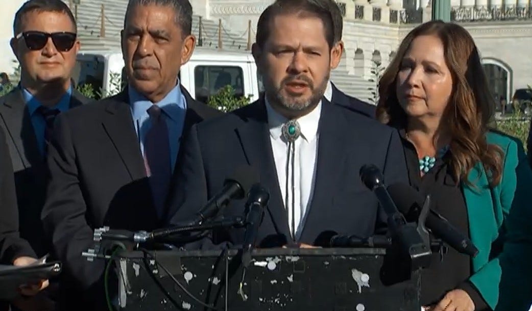 At a press conference, Sen. Reuben Gallego said that Speaker Johnson hasn't sworn in Adelita Grijalva because he is protecting pedophiles.