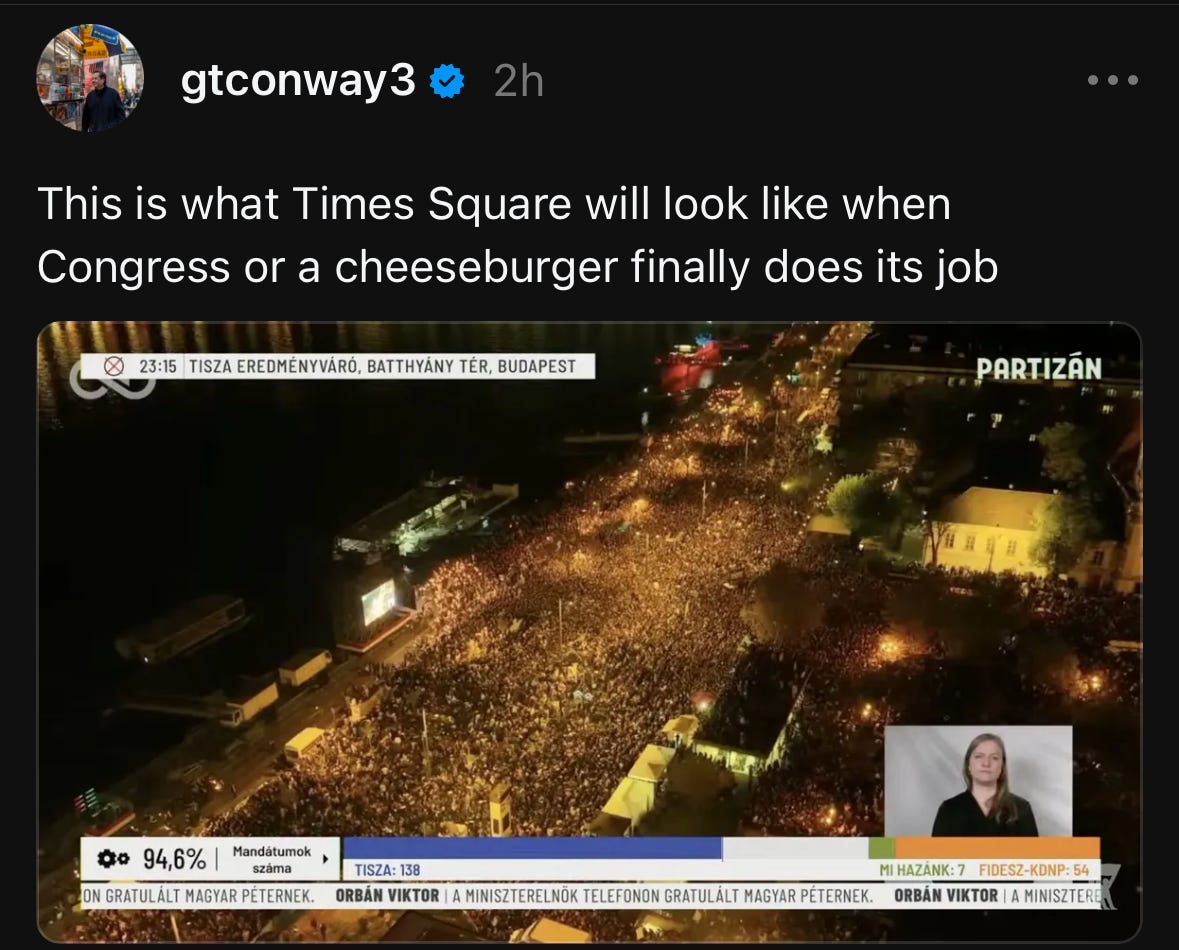 George Conway pointed out that their celebrations in the street are what Times Square will look like when Congress or a cheeseburger do its job (all bets on the cheeseburger given this Congress):