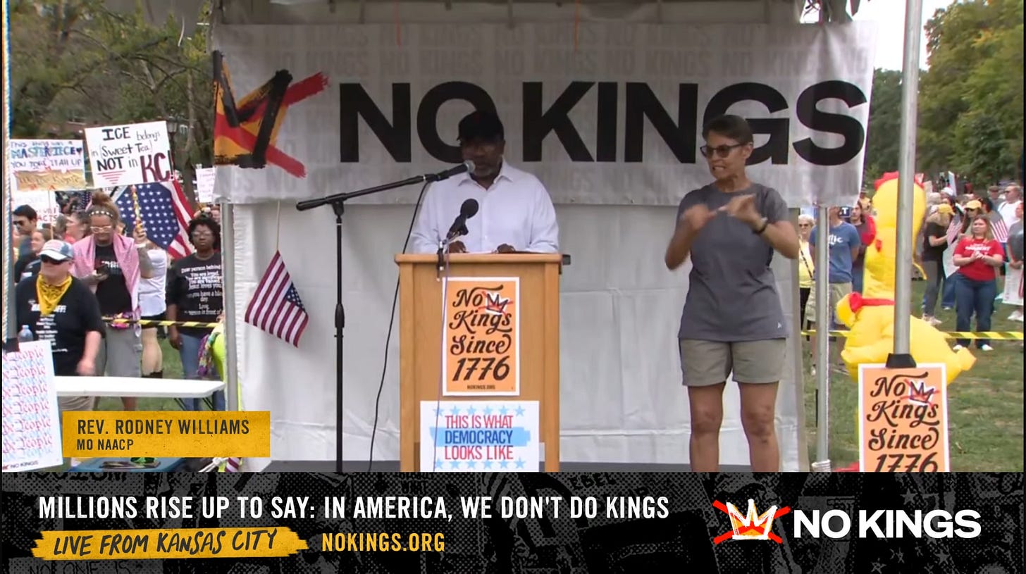 You don’t have to be religious to be taken to church. And today, Reverend Rodney Williams took an enthusiastic No Kings crowd in Kansas City, Missouri to church, warning that America is in a moral crisis.