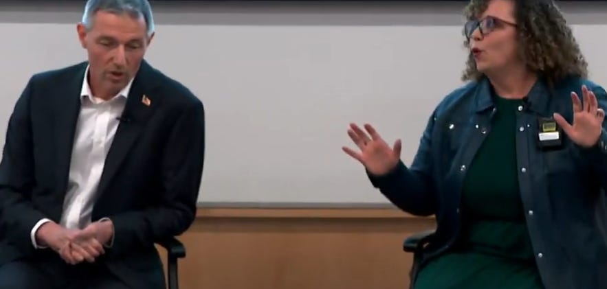 The first question asked, because it received over 200 thumbs up from attendees, came from Brigham Young University professor Peter Reschke: “If the current administration continues to defy court orders, will you commit to call for articles of impeachment to protect our republic’s checks and balances?”