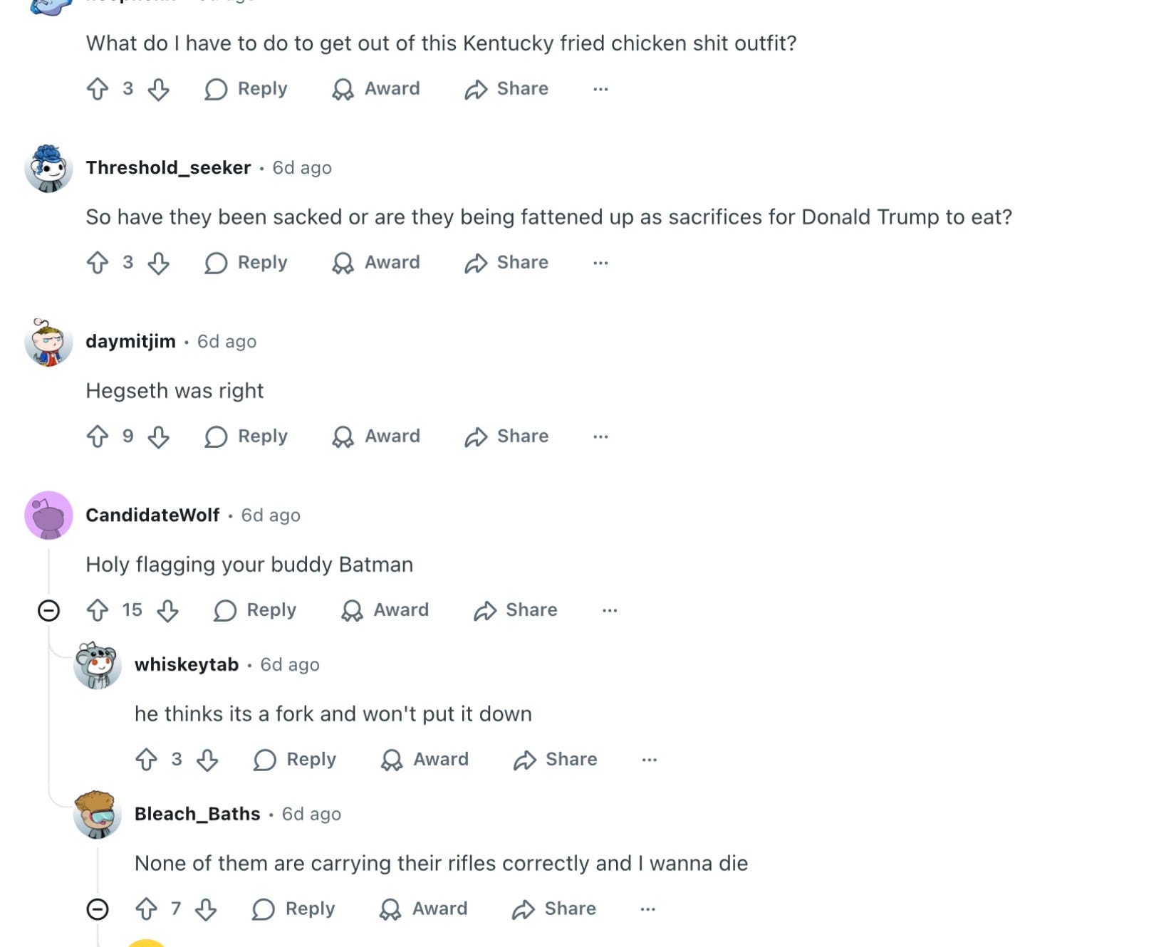 In reality, the Trump Department of War on American Citizens will take anyone they can get, and that has been made very obvious, as some of the online criticism included how these “troops” were holding their guns.