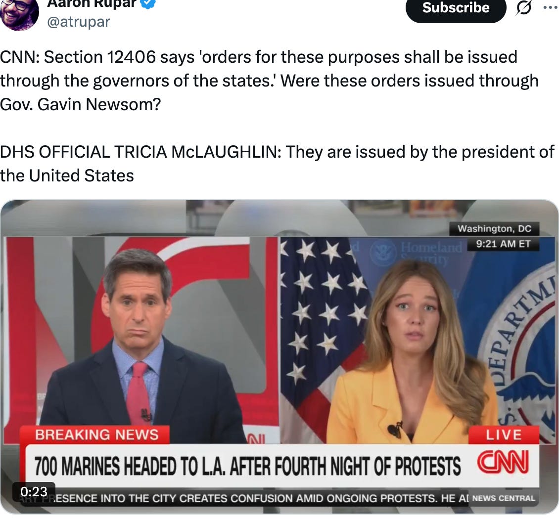 DHS Assistant Secretary for Public Affairs Tricia McLaughlin was unable to explain exactly why Donald Trump ordered Marines to Los Angeles, when the Governor did not request them.